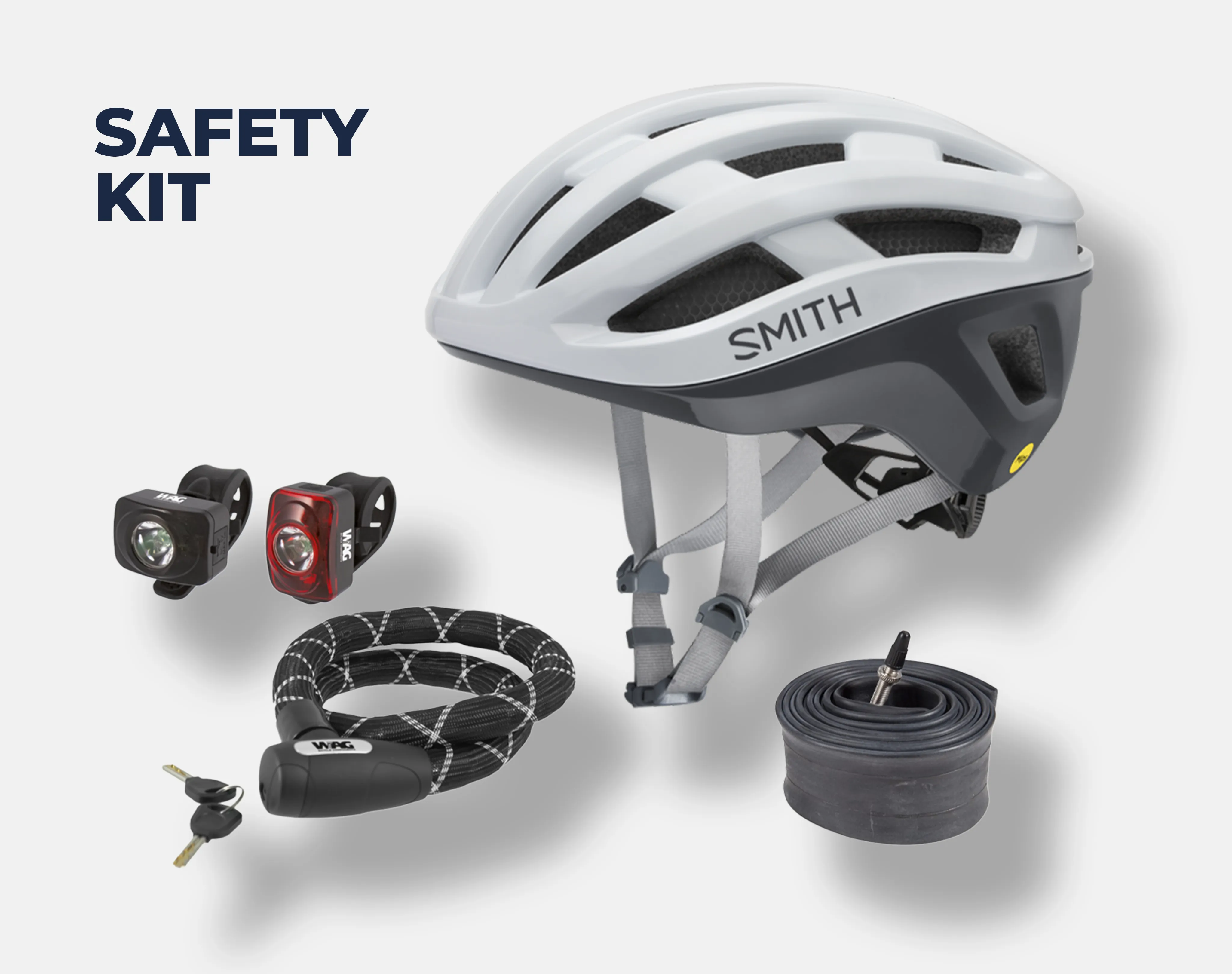 HELMET, LIGHTS, LOCKER and a REPAIR KIT.